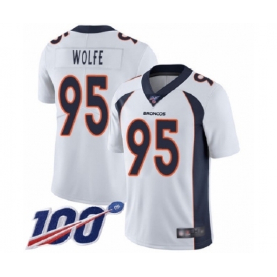 >Men's Denver Broncos #95 Derek Wolfe White Vapor Untouchable Limited Player 100th Season Football Jersey