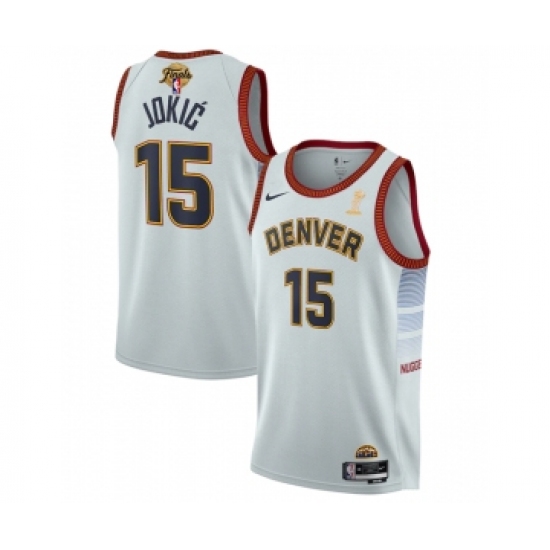 >Men's Denver Nuggets #15 Nikola Jokic White 2023 Finals Champions Icon Edition Stitched Basketball Jersey