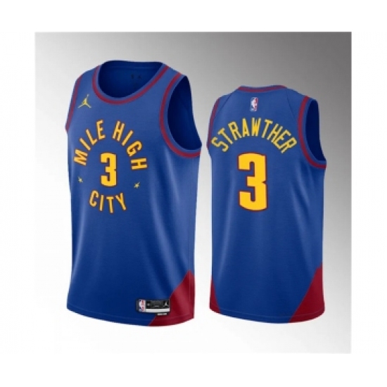 >Men's Denver Nuggets #3 Julian Strawther Blue 2023 Draft Statement Edition Stitched Basketball Jersey
