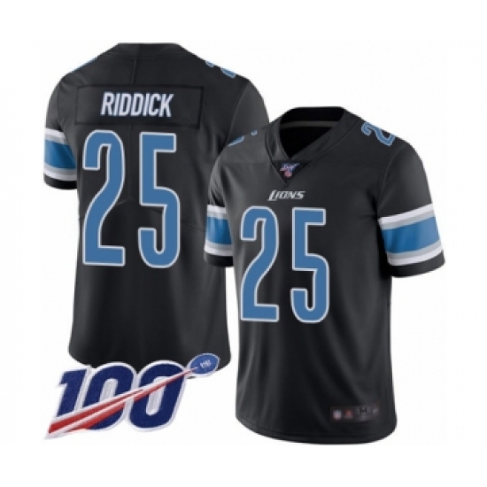 >Men's Detroit Lions #25 Theo Riddick Limited Black Rush Vapor Untouchable 100th Season Football Jersey