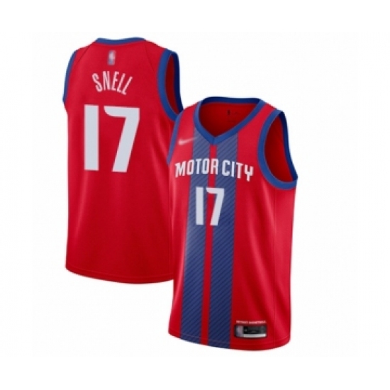 >Men's Detroit Pistons #17 Tony Snell Swingman Red Basketball Jersey - 2019 20 City Edition