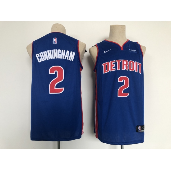 Men's Detroit Pistons #2 Cade Cunningham Blue 2021 Draft First Round Jersey