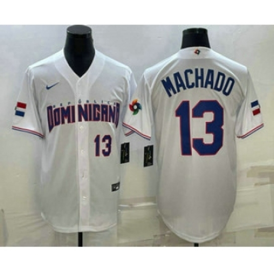 Men's Dominican Republic Baseball #13 Manny Machado 2023 White World Baseball Classic Stitched Jerseys