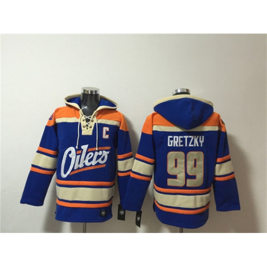 Men's Edmonton Oilers #99 Wayne Gretzky Blue Lace-Up Pullover Hoodie