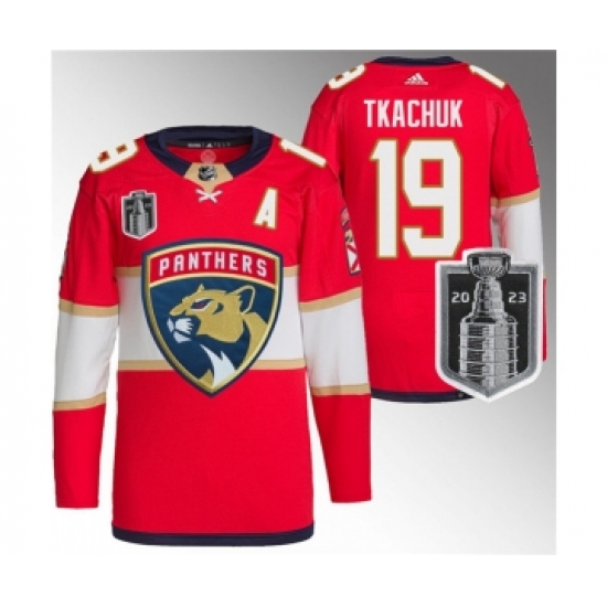 Men's Florida Panthers #19 Matthew Tkachuk Red 2023 Stanley Cup Final Stitched Jersey