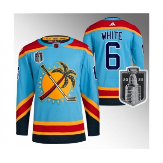Men's Florida Panthers #6 Colin White Blue 2023 Stanley Cup Final Reverse Retro Stitched Jersey