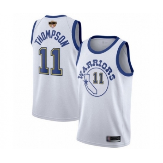Men's Golden State Warriors #11 Klay Thompson Swingman White Hardwood Classics 2019 Basketball Finals Bound Basketball Jersey
