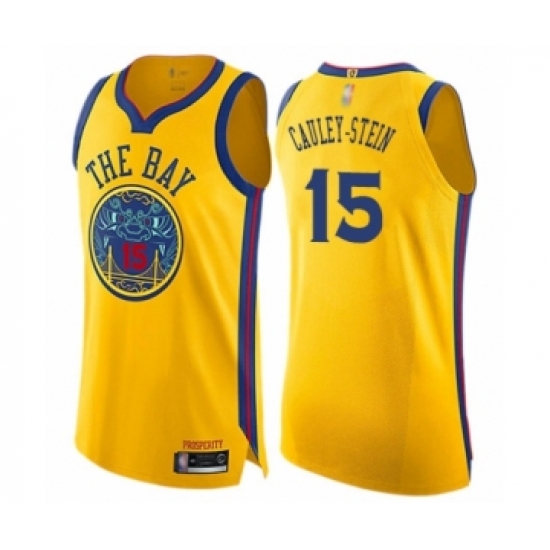 >Men's Golden State Warriors #15 Willie Cauley-Stein Authentic Gold Basketball Jersey - City Edition
