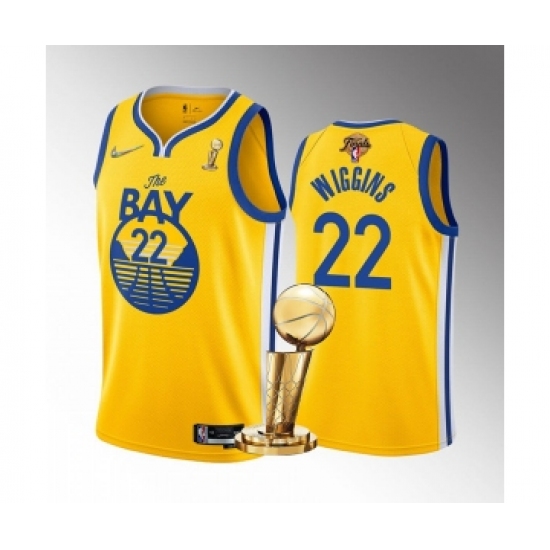 >Men's Golden State Warriors #22 Andrew Wiggins Gold 2022 NBA Finals Champions Stitched Jersey