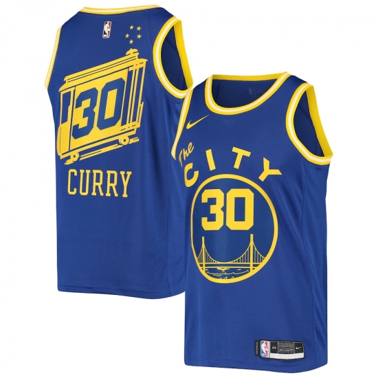>Men's Golden State Warriors #30 Stephen Curry Nike Royal Hardwood Classics 2020-21 Swingman Jersey