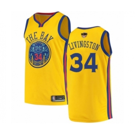 >Men's Golden State Warriors #34 Shaun Livingston Swingman Gold 2019 Basketball Finals Bound Basketball Jersey - City Edition
