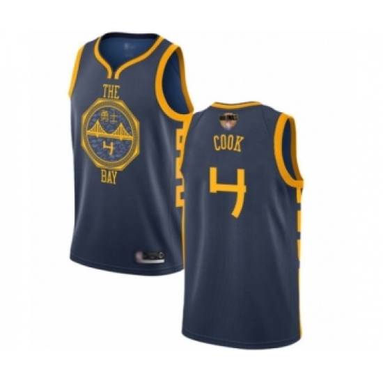 >Men's Golden State Warriors #4 Quinn Cook Swingman Navy Blue Basketball 2019 Basketball Finals Bound Jersey - City Edition