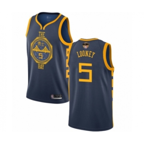 >Men's Golden State Warriors #5 Kevon Looney Swingman Navy Blue Basketball 2019 Basketball Finals Bound Jersey - City Edition
