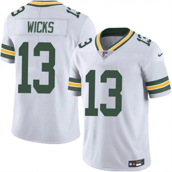 Men's Green Bay Packers #13 Dontayvion Wicks White 2025 Vapor Untouchable Limited Football Stitched Jersey