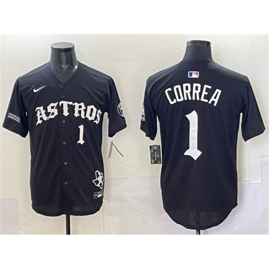 >Men's Houston Astros #1 Carlos Correa Black Gothic 'Houston Born Barrio Raised' Limited Stitched Baseball Jersey