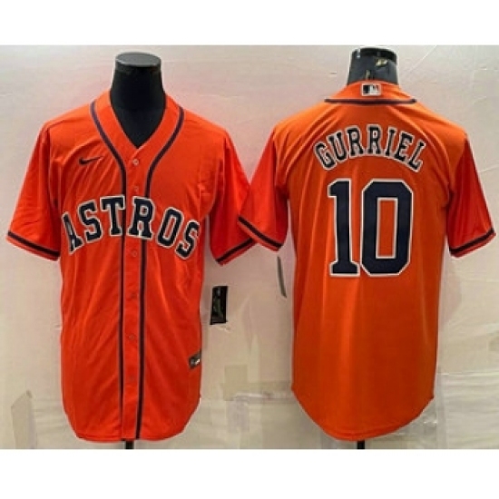 >Men's Houston Astros #10 Yuli Gurriel Orange Stitched MLB Cool Base Nike Jersey