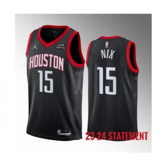 >Men's Houston Rockets #15 Daishen Nix Black 2023 Statement Edition Stitched Basketball Jersey