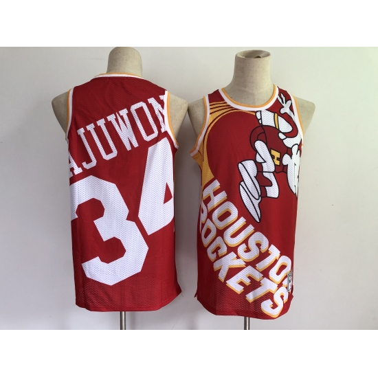 >Men's Houston Rockets #34 Hakeem Olajuwon Red Big Face-2.0 Jersey