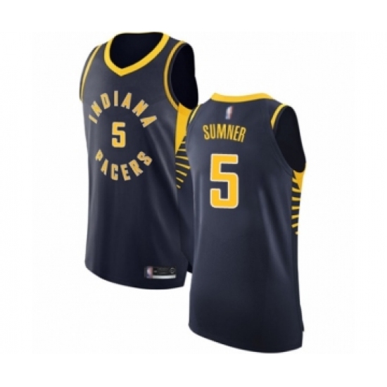 Men's Indiana Pacers #5 Edmond Sumner Authentic Navy Blue Basketball Jersey - Icon Edition