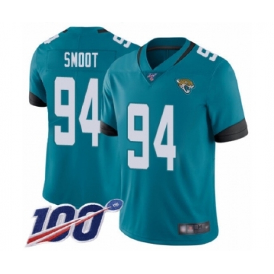 Men's Jacksonville Jaguars #94 Dawuane Smoot Teal Green Alternate Vapor Untouchable Limited Player 100th Season Football Jersey