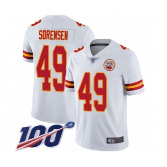 >Men's Kansas City Chiefs #49 Daniel Sorensen White Vapor Untouchable Limited Player 100th Season Football Jersey