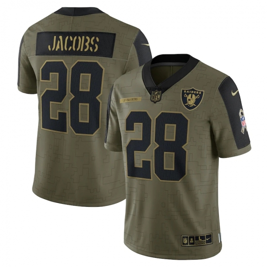 >Men's Las Vegas Raiders #28 Josh Jacobs Nike Olive 2021 Salute To Service Limited Player Jersey