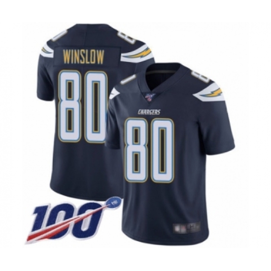 >Men's Los Angeles Chargers #80 Kellen Winslow Navy Blue Team Color Vapor Untouchable Limited Player 100th Season Football Jersey