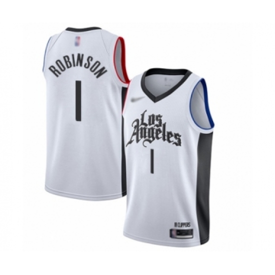 >Men's Los Angeles Clippers #1 Jerome Robinson Swingman White Basketball Jersey - 2019 20 City Edition
