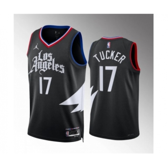 Men's Los Angeles Clippers #17 P.j. Tucker Black Statement Edition Stitched Jersey