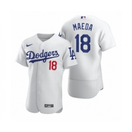 >Men's Los Angeles Dodgers #18 Kenta Maeda Nike White 2020 Authentic Jersey