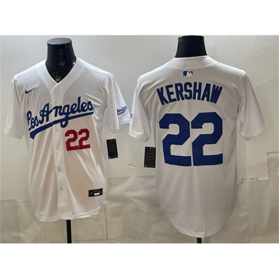 Men's Los Angeles Dodgers #22 Clayton Kershaw White 2024 World Series Champions Home Limited Stitched Baseball Jersey