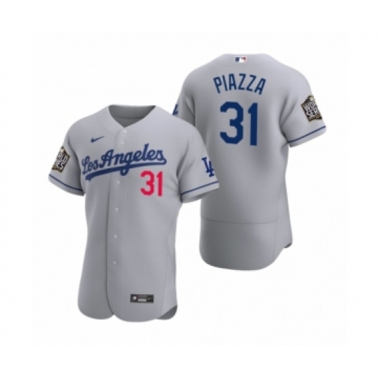 Men's Los Angeles Dodgers #31 Mike Piazza Nike Gray 2020 World Series Authentic Road Jersey