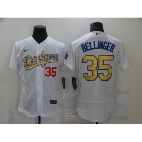 Men's Nike Los Angeles Dodgers #35 Cody Bellinger White Game Champions Authentic Jersey