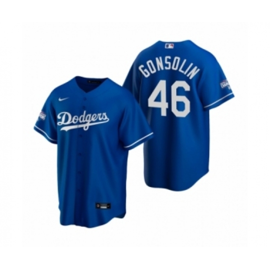 >Men's Los Angeles Dodgers #46 Tony Gonsolin Royal 2020 World Series Champions Replica Jersey