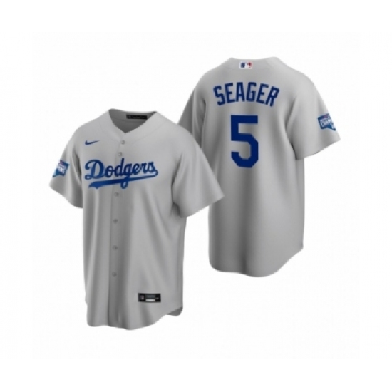 Men's Los Angeles Dodgers #5 Corey Seager Gray 2020 World Series Champions Replica Jersey