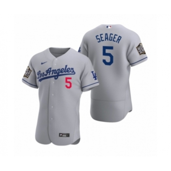 Men's Los Angeles Dodgers #5 Corey Seager Nike Gray 2020 World Series Authentic Road Jersey