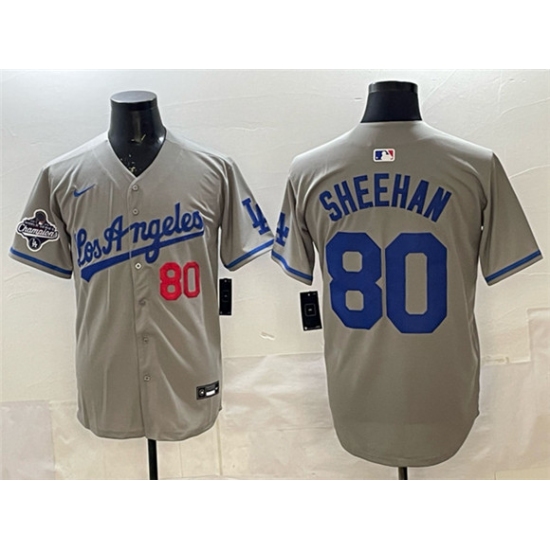 Men's Los Angeles Dodgers #80 Emmet Sheehan Gray 2025 World Series Champions Limited Stitched Baseball Jersey