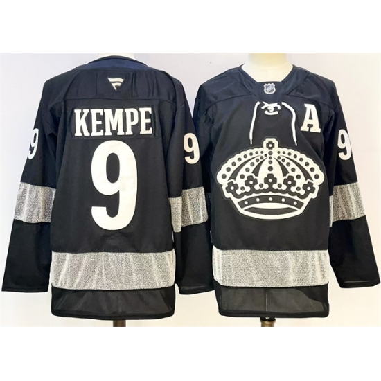 Men's Los Angeles Kings #9 Adrian Kempe Black 2024-25 Home With A Stitched Hockey Jersey