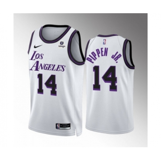 >Men's Los Angeles Lakers #14 Scottie Pippen Jr. White City Edition Stitched Basketball Jersey