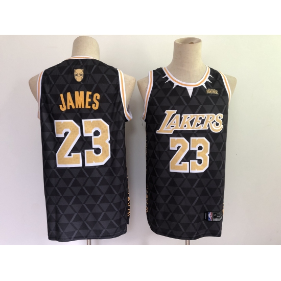 Men's Los Angeles Lakers #23 LeBron James Black Panther Limiter Jersey
