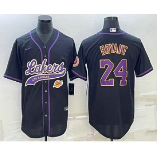 >Men's Los Angeles Lakers #24 Kobe Bryant Black With Cool Base Stitched Baseball Jerseys