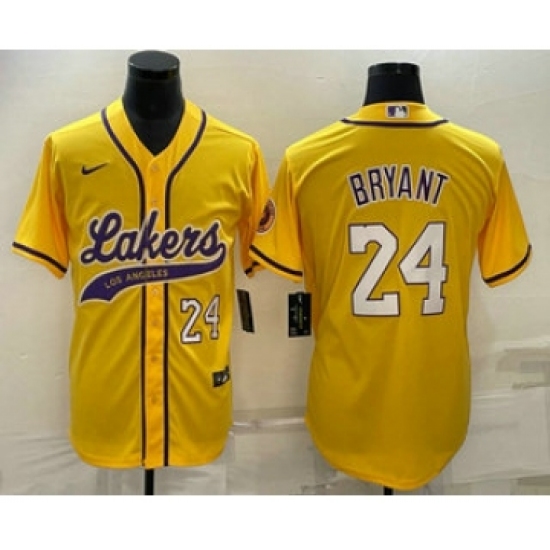 Men's Los Angeles Lakers #24 Kobe Bryant Number Yellow With Cool Base Stitched Baseball Jersey