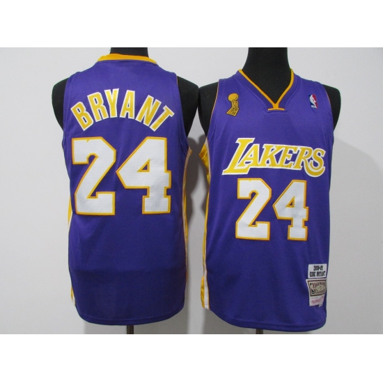 >Men's Los Angeles Lakers #24 Kobe Bryant Purple Stanley Cup Champions Jersey