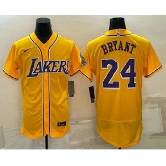 Men's Los Angeles Lakers #24 Kobe Bryant Yellow Cool Base Stitched Baseball Jersey