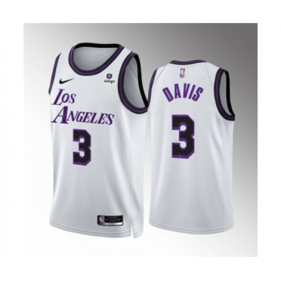 Men's Los Angeles Lakers #3 Anthony Davis White City Edition Stitched Basketball Jersey