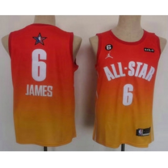>Men's Los Angeles Lakers #6 LeBron James Orange 2022 All Star 6 Patchs Icon Sponsor Swingman Jersey