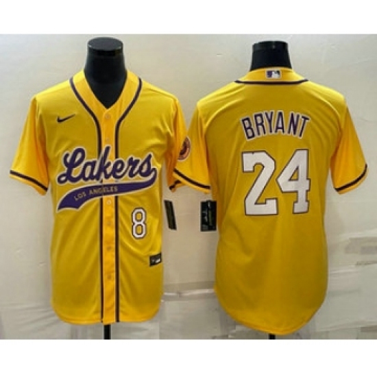 >Men's Los Angeles Lakers #8 #24 Kobe Bryant Yellow With Cool Base Stitched Baseball Jersey