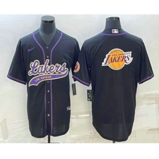 Men's Los Angeles Lakers Black Big Logo Cool Base Stitched Baseball Jerseys
