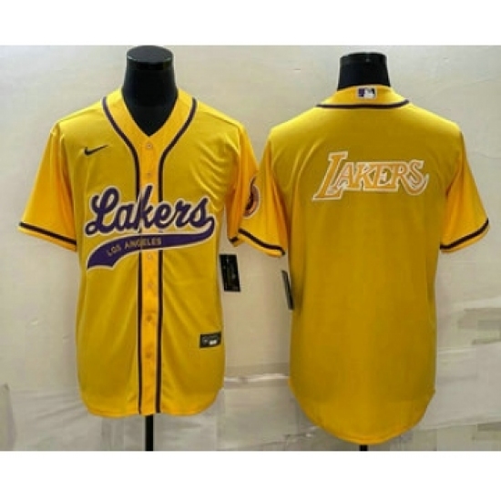 Men's Los Angeles Lakers Yellow Big Logo Cool Base Stitched Baseball Jersey