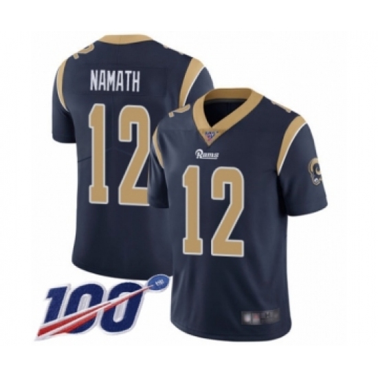 Men's Los Angeles Rams #12 Joe Namath Navy Blue Team Color Vapor Untouchable Limited Player 100th Season Football Jersey